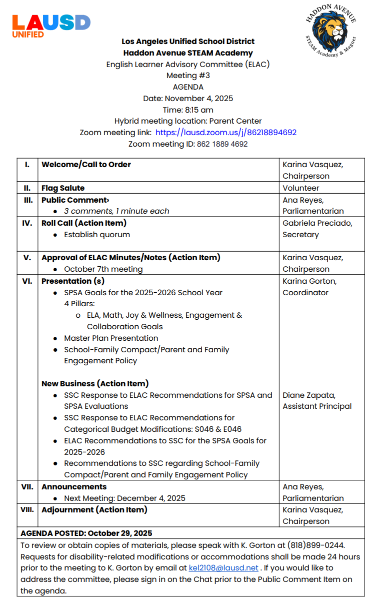 9-30-25 1st ELAC Meeting Agenda